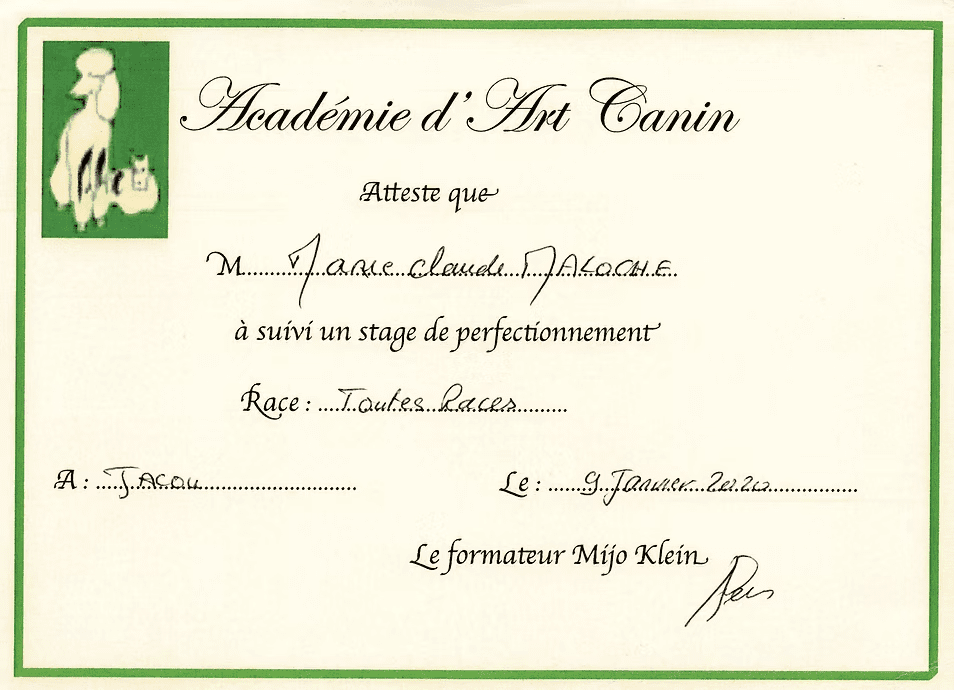 J’ai effectué, une formation (chez une toiletteuse expérimentée depuis plus de 20 ans) basée sur le RESPECT de nos amis à quatre pattes.